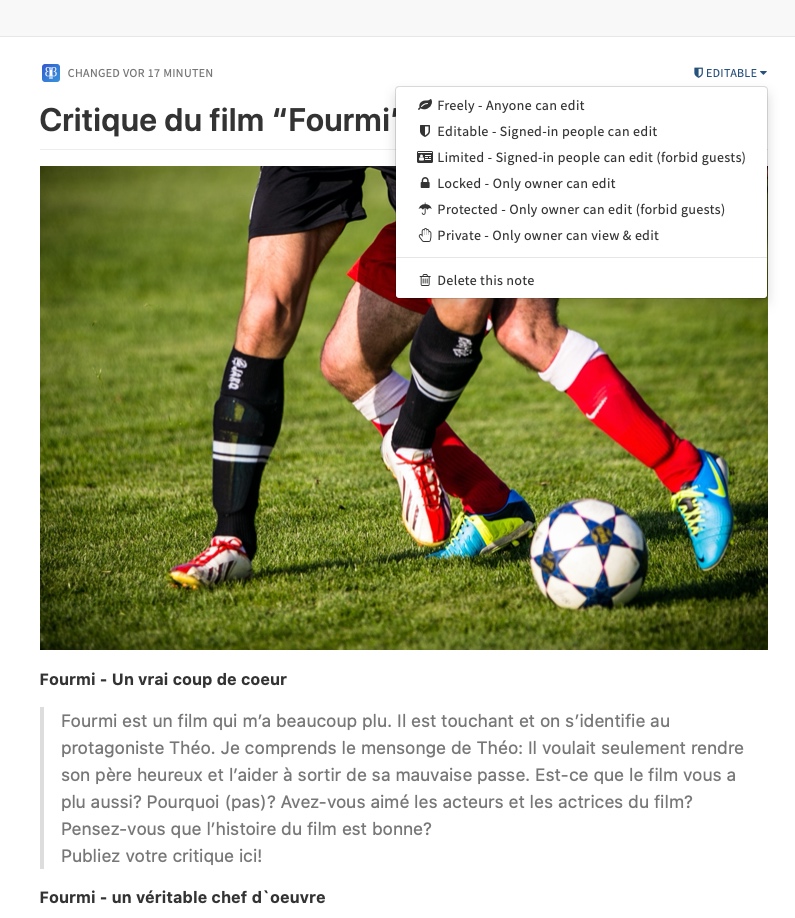 Hinweis: Die Rechte können Sie jederzeit auch wieder einschränken (Editable, Limited, Locker, Protected, Private), siehe Screenshot unten.