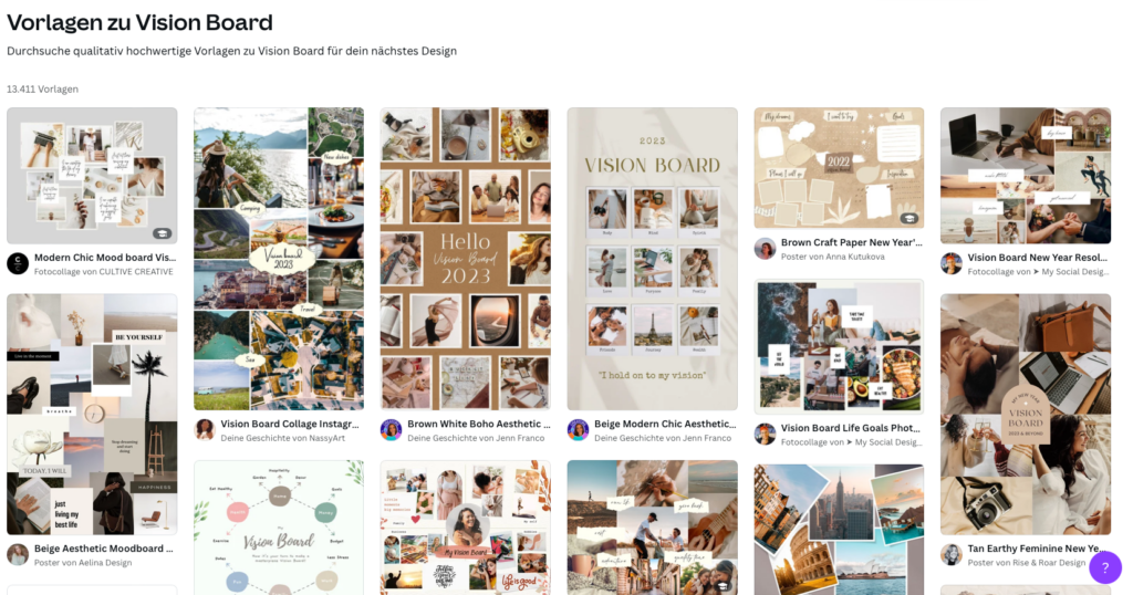 Vorlagen zu Vision boads des Designtools [Canva]: