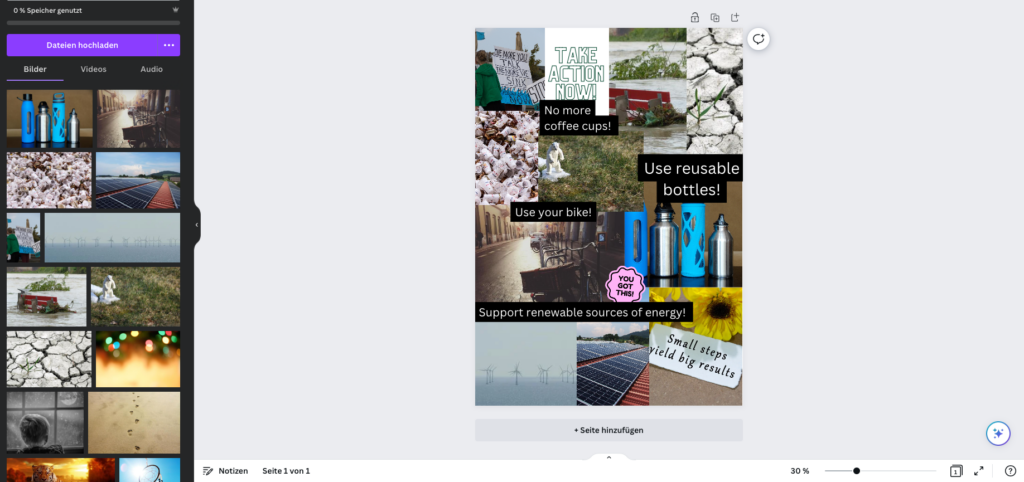 Find pictures to visualize your visions of the future or use your own drawings. If you like, add links to interesting articles, podcasts, videos etc. You can use a design software or photo editing app on your device or an online design tool to create your collage.“ (Verena Plomer, The boy who harnessed the wind : Teacher’s Guide. Stuttgart : Ernst Klett Sprachen, 2023. 65.)